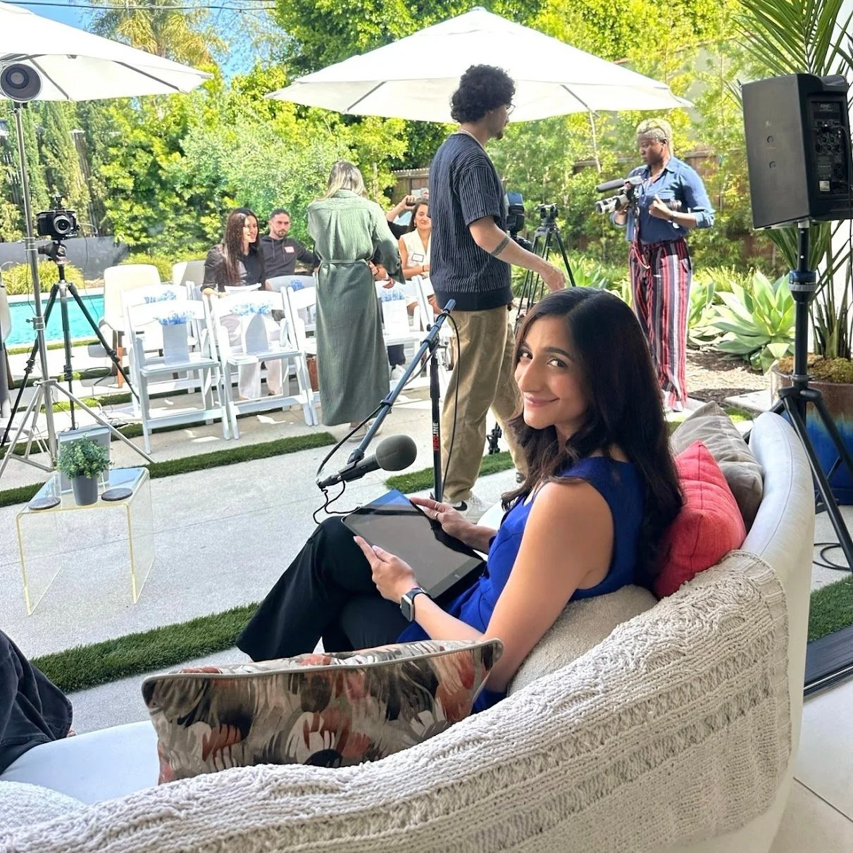 Shelly preparing for her video podcast interview with Sahil Bloom